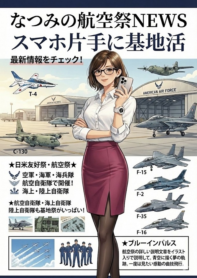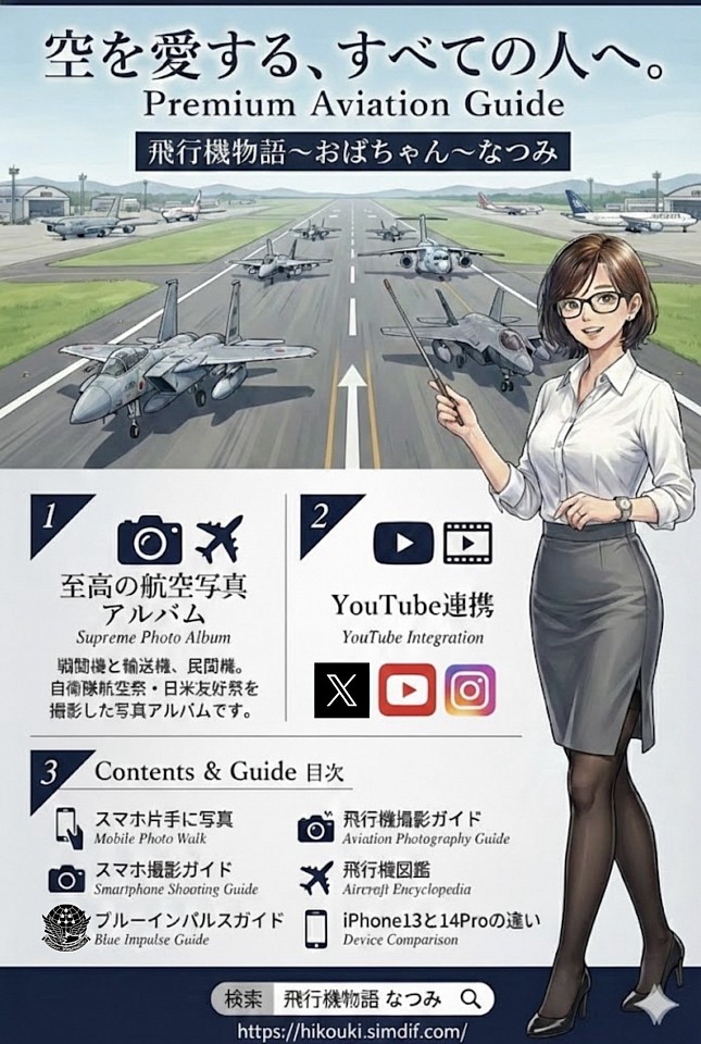 このサイトは、飛行機が大好きな なつみが航空祭・基地・空港で出会った「ちょっとワクワクする瞬間」を大人女子目線で綴っているホームページです!