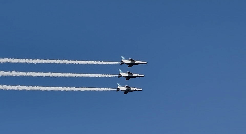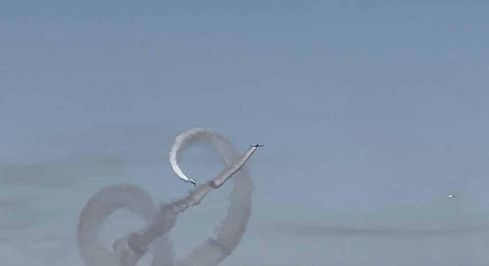 3機編隊の回転演技、空に描かれるラインが美しい✨ - 360°&ループ