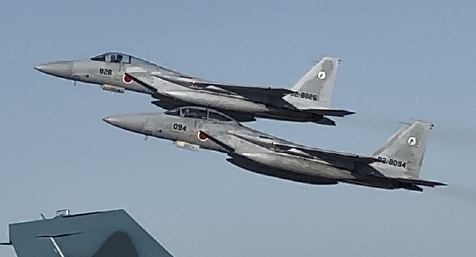 8:33 F-15 2機 エンジンスタート 8:47 タキシング開始 9:05 F-15 2機による機動飛行