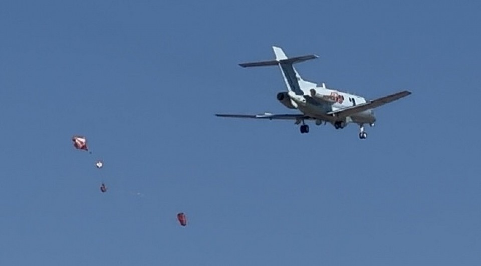 2機が ドラッグシュートを開いて着陸!