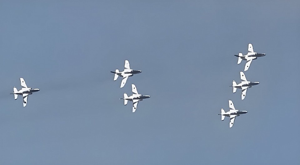 UH-60J、U-125A、T-4、F-2×6機による 航過飛行✨