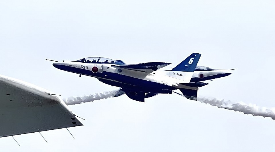アクロバットの素晴らしさは、小回りのきくT-4!6機フォーメーションからソロ演技まで接近しての一糸乱れぬパフォーマンスには感動します。
