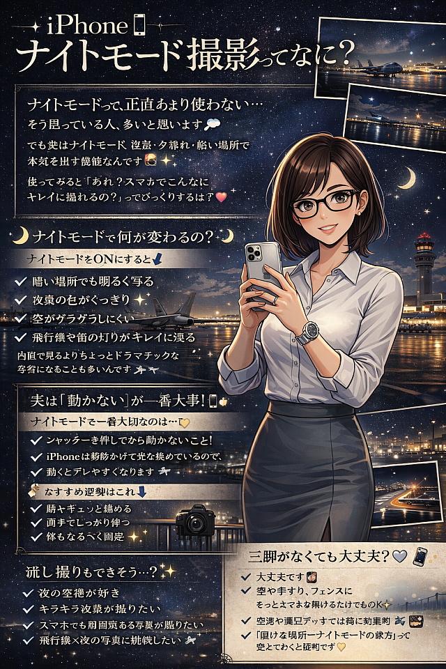 (Proモデルや望遠レンズがあれば、遠くの飛行機も撮りやすいよ💡)
